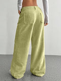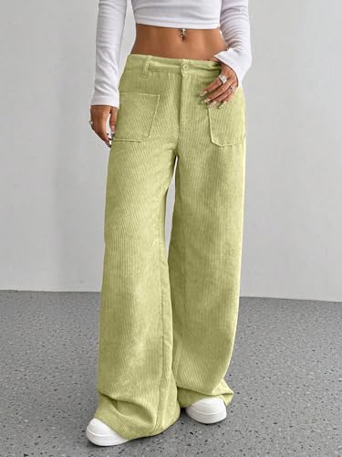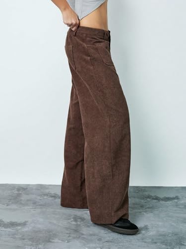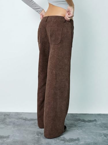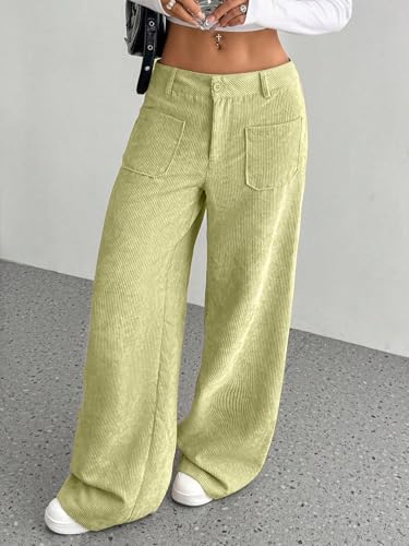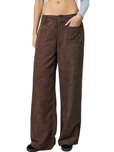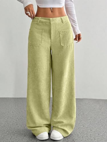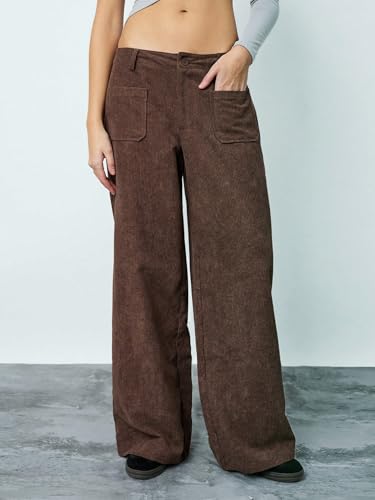 SAKHWALA Women Corduroy Wide Leg Trousers | Stylish High Waist Pants with Front Patch Pockets | Winter Wear Casual Bottoms for Girls & Ladies