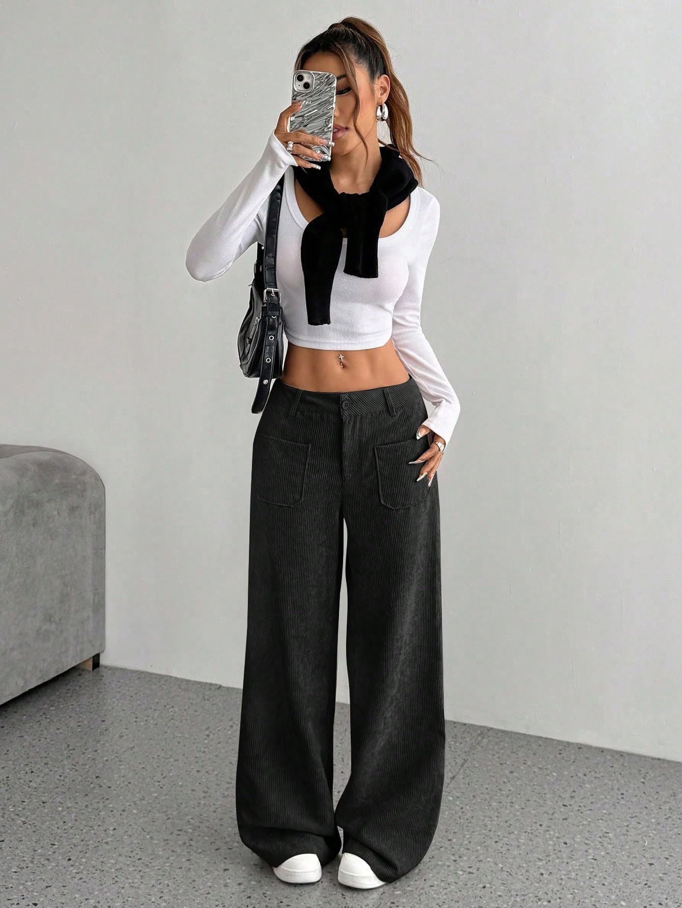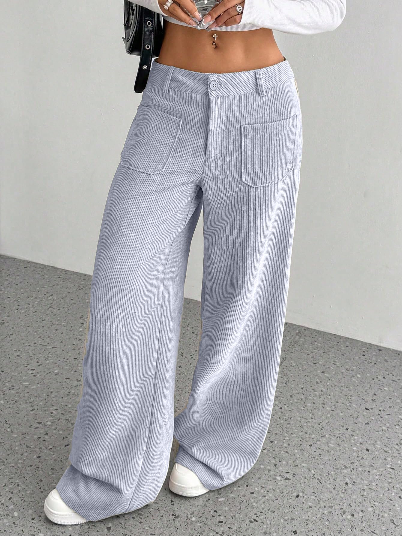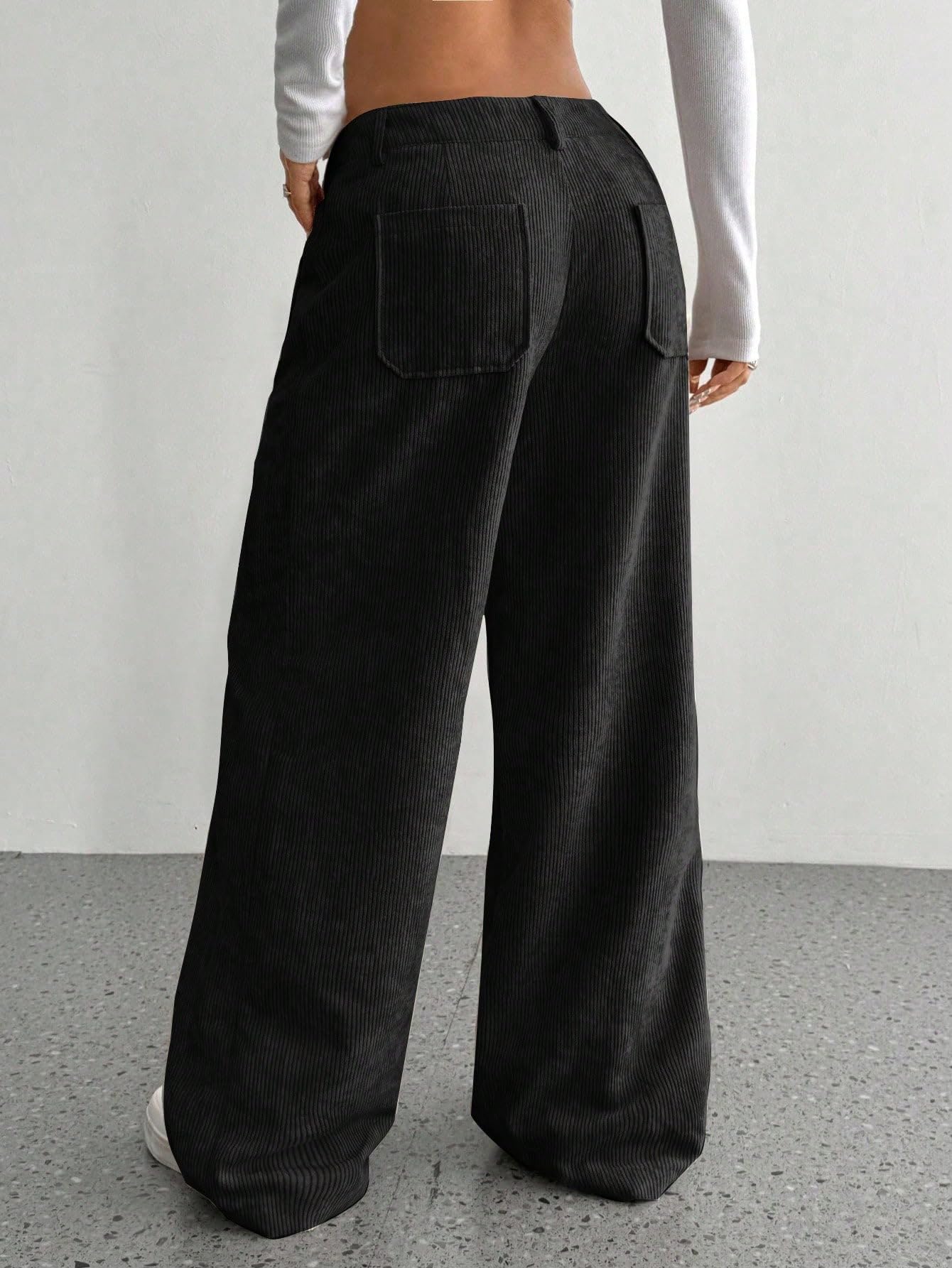 Discover a perfect blend of style and comfort with SAKHWALA Women’s Corduroy Wide Leg Trousers. Tailored from premium corduroy fabric, these pants offer a luxuriously soft feel with a classic ribbed texture that adds both warmth and character—making them a great choice for fall and winter wardrobes. Designed with a comfortable high-rise waist and relaxed wide-leg fit, these trousers ensure a flattering shape while allowing unrestricted movement. The functional front patch pockets not only elevate the overall aesthetic but also offer practical storage for your essentials. Whether you're stepping out for a casual brunch, a day at the university, or lounging in style, these trousers pair effortlessly with crop tops, fitted blouses, or oversized layers. The neutral tones—Black, Grey, and Cream—make mixing and matching a breeze. Elevate your wardrobe with this affordable yet fashionable piece from SAKHWALA, a brand known for combining quality and everyday wearability.